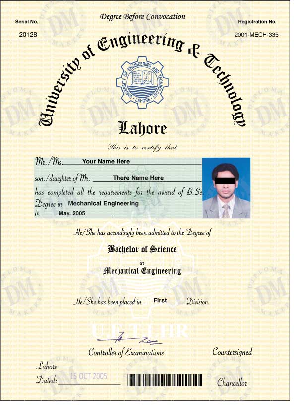 Pakistan fake diploma sample Univeristy of Eng Tech