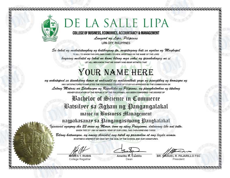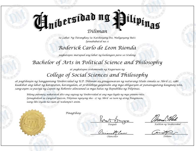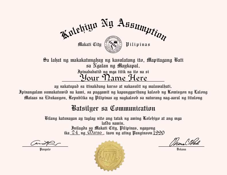 Phillippines fake diploma sample Kolehiyo Ng Assumption