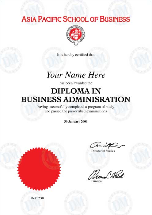 Singapore Fake Diploma Sample from Asia Pacific School of Business