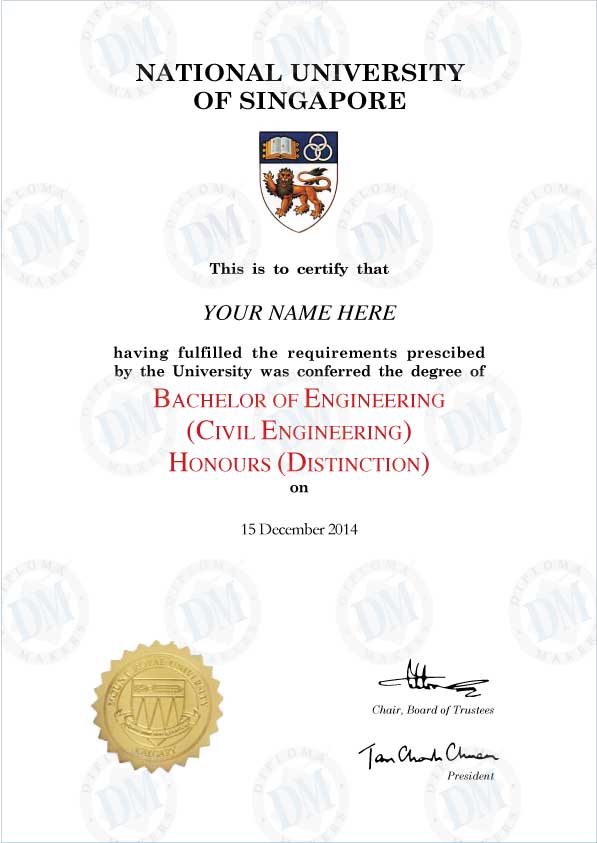 Singapore fake diploma sample National University of Singapore