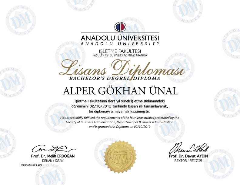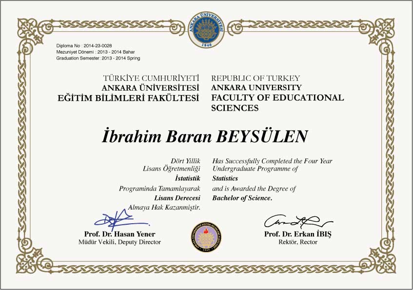Turkey Ankara Üniversitesi Fake Diploma Sample